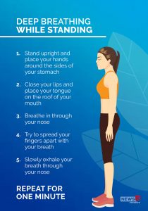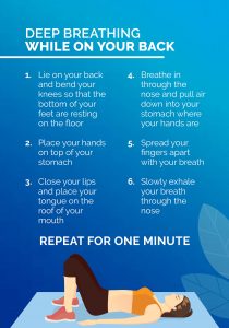 Deep breathing exercises Take a long slow deep breath in through your nose if you can.